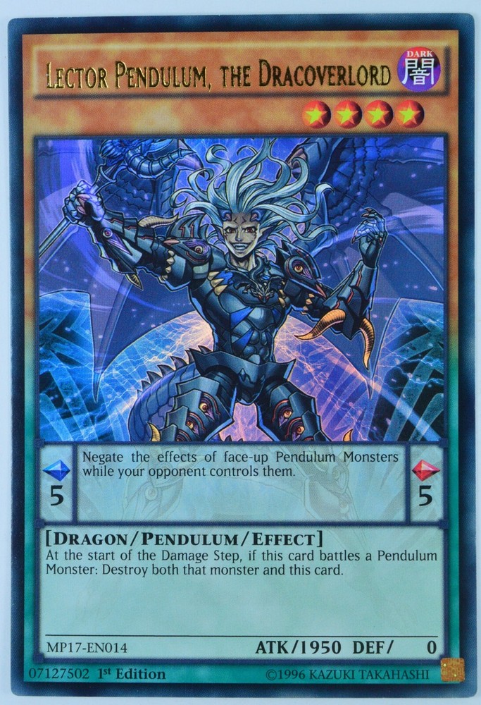YuGiOh Lector Pendulum, the Dracoverlord MP17-EN014 Ultra Rare 1st Edition Cards are mint We only sell original YuGiOh cards...