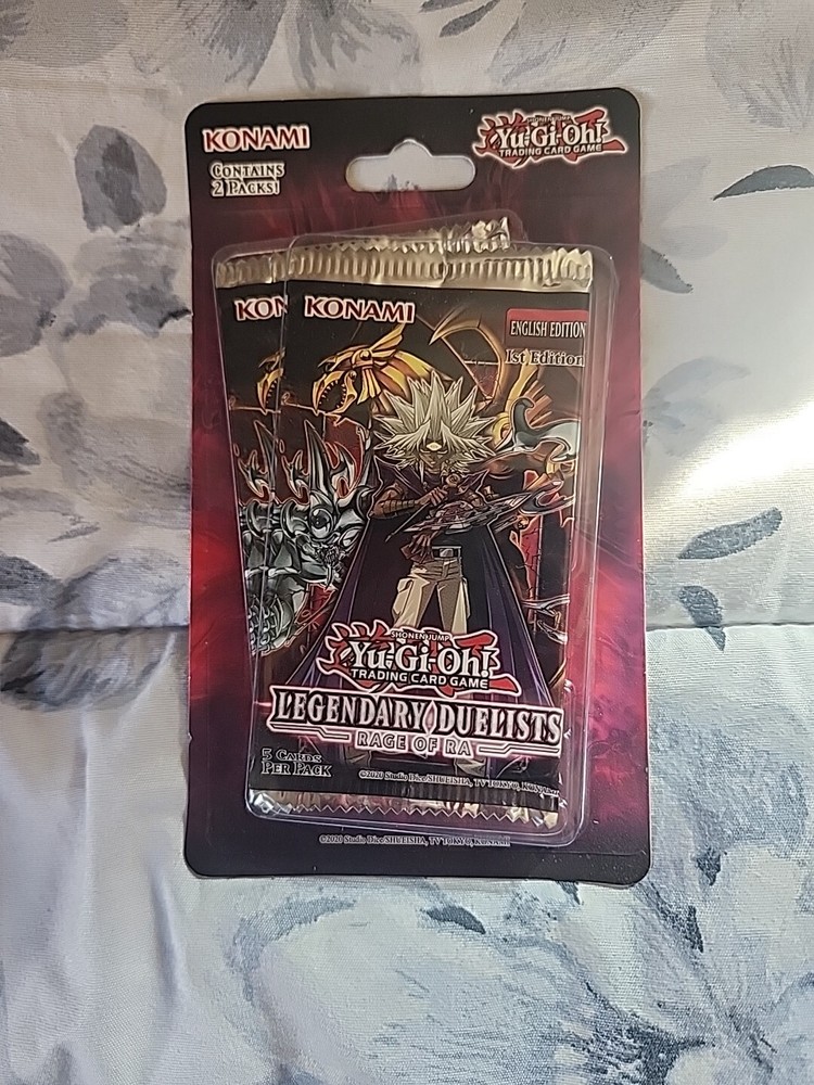 New in original (factory sealed/unopened) retail packaging. Yugioh Legendary Duelists Rage of Ra 2-Pack Booster Pack Blister (2020 English 1st Edition). Blister contains 2 booster packs. Each booster pack contains 5 cards. Items ship with First Class via USPS on the next business day. Ships in sturdy box to protect the items. International shipping is available through eBay's Global Shipping Program. See pictures to view the items.