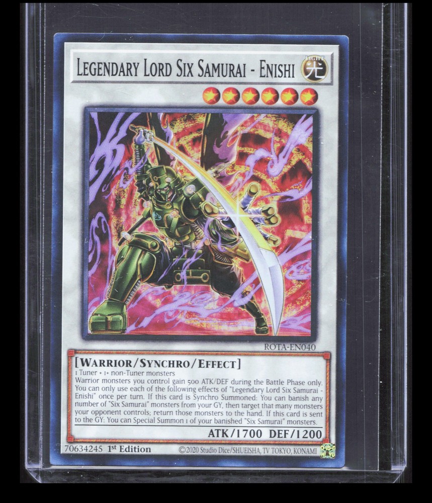 This is a fantastic addition to any Six Samurai deck! The artwork is stunning, and the card arrived in excellent condition—clean edges, no noticeable wear, and a smooth surface. Perfect for collectors or players looking to strengthen their strategy. The seller provided clear details, making it easy to trust the quality. Very happy with this purchase!