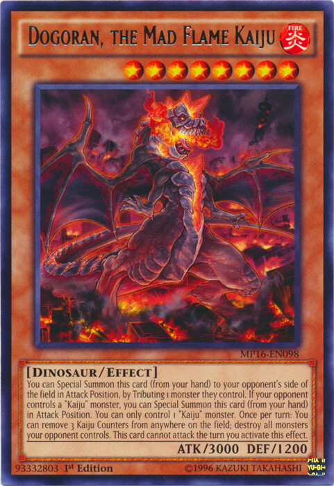 You are bidding on: Yugioh! Dogoran, the Mad Flame Kaiju - MP16-EN098 - Rare - 1st Edition Condition: Condition: Moderately Played | Language: English All photos are stock, unless mentioned otherwise. Card edition, rarity, etc. are listed in the title and description. Cards are in English unless otherwise stated in title or description. Items will be shipped within 1 business day upon receiving cleared payment. We ship Monday through Saturday in order to get the item(s) to you as quickly as possible Before leaving neutral or negative feedback, please contact us beforehand so we can discuss the issue. Feel free to message me with any questions you have regarding this auction or my policies. Shipping Options: USPS Mail - $0.99 Orders $29.99 (exc. sales tax) and under will be sent in a white envelope in a card saver + soft sleeve using eBay's Standard Envelope tracking service. Orders $30.00 (exc. sales tax) and over will be sent with free USPS tracking information w/ toploader + soft sleeve. Priority Mail - $9.99 2-3 Day shipping Orders will be shipped in a flat rate envelope in a toploader + soft sleeve. Priority Express Mail - $29.99 1-2 Day shipping Orders will be shipped in a flate rate envelope in a toploader + soft sleeve. *All orders over $100 will be sent with free insurance. All orders over $250 will be sent with free insurance and signature confirmation.* Card Grading: Near Mint (NM) - Cards with this grade will show minimal to no wear from shuffling, play or handling and can have a nearly unmarked surface, crisp corners and unblemished edges outside of a few minimal flaws. Holographic cards are more scrutinized than non-holo cards. Lightly Played (LP) - Cards with this grade may have a few dings, light playwear and/or edgewear. A crease or bend is acceptable if it is less than approximately 1/2 inch in size and is only visible on one side. Moderately Played (MP) - Cards with this grade may have dings, playwear and/or edgwear, 1 or 2 creases or bends that do not go through the length of the card. Heavily Played (HP) - Cards with this grade may have dings, playwear and/or edgwear, creases or bends that may go the length of the card, markings and/or coloring, tears on the edges. Despite being the lowest of grading, these cards are still tournament legal. If you receive a card not in the stated condition, please contact us to return the item for a full refund. Thank you for buying.