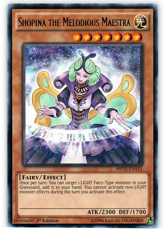 You are bidding on: Yugioh! Shopina the Melodious Maestra - MP15-EN131 - Rare - 1st Edition Condition: Condition: Moderately Played | Language: English All photos are stock, unless mentioned otherwise. Card edition, rarity, etc. are listed in the title and description. Cards are in English unless otherwise stated in title or description. Items will be shipped within 1 business day upon receiving cleared payment. We ship Monday through Saturday in order to get the item(s) to you as quickly as possible Before leaving neutral or negative feedback, please contact us beforehand so we can discuss the issue. Feel free to message me with any questions you have regarding this auction or my policies. Shipping Options: USPS Mail - $0.99 Orders $29.99 (exc. sales tax) and under will be sent in a white envelope in a card saver + soft sleeve using eBay's Standard Envelope tracking service. Orders $30.00 (exc. sales tax) and over will be sent with free USPS tracking information w/ toploader + soft sleeve. Priority Mail - $9.99 2-3 Day shipping Orders will be shipped in a flat rate envelope in a toploader + soft sleeve. Priority Express Mail - $29.99 1-2 Day shipping Orders will be shipped in a flate rate envelope in a toploader + soft sleeve. *All orders over $100 will be sent with free insurance. All orders over $250 will be sent with free insurance and signature confirmation.* Card Grading: Near Mint (NM) - Cards with this grade will show minimal to no wear from shuffling, play or handling and can have a nearly unmarked surface, crisp corners and unblemished edges outside of a few minimal flaws. Holographic cards are more scrutinized than non-holo cards. Lightly Played (LP) - Cards with this grade may have a few dings, light playwear and/or edgewear. A crease or bend is acceptable if it is less than approximately 1/2 inch in size and is only visible on one side. Moderately Played (MP) - Cards with this grade may have dings, playwear and/or edgwear, 1 or 2 creases or bends that do not go through the length of the card. Heavily Played (HP) - Cards with this grade may have dings, playwear and/or edgwear, creases or bends that may go the length of the card, markings and/or coloring, tears on the edges. Despite being the lowest of grading, these cards are still tournament legal. If you receive a card not in the stated condition, please contact us to return the item for a full refund. Thank you for buying.