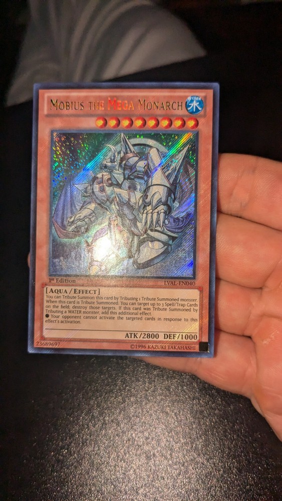 Mobius the Mega Monarch 1st Edition The card is in NM condition and will be placed in a top sleeve and loader for security. Also will include a free Holographic card which can be Super, Ultra, Secret, etc! Card Information SP15-EN009 - 1st Edition Star Pack ARC-V International Shipping Email me for combined shipping so I can create a new listing for you to save on shipping costs.