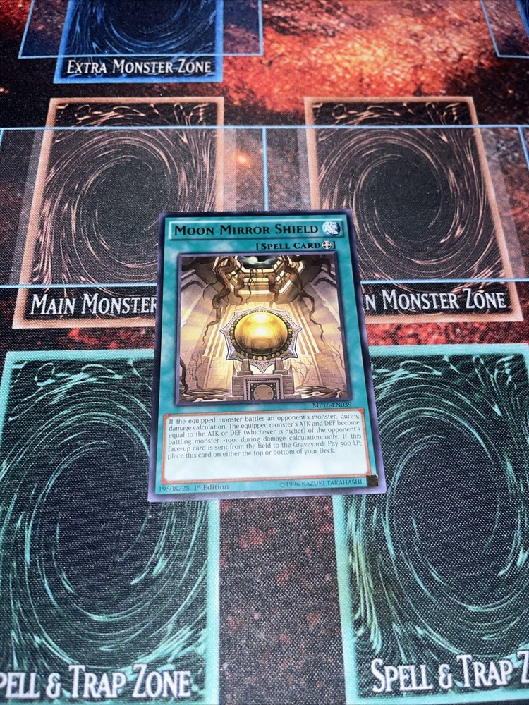 This Moon Mirror Shield card is a fantastic addition to any Yugioh deck! The Rare 1st Edition makes it a must-have for collectors and players alike. The Near Mint condition ensures it looks perfect, and shipping is fast and reliable. Seller communication is friendly and helpful—highly recommend!