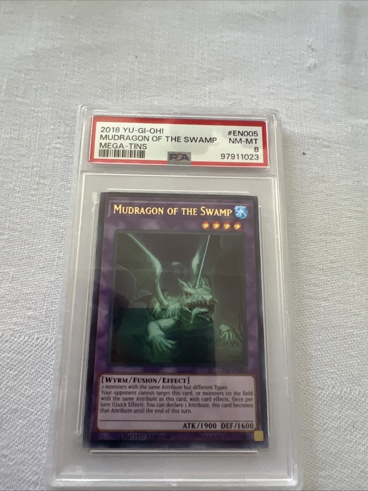 This limited edition ultra rare Mudragon of the Swamp card from the Yu-Gi-Oh! TCG game is a must-have for any collector. With a PSA 8 rating, it's a valuable addition to any collection. Featuring a unique design and rarity, this card is perfect for those who want to stand out from the crowd. The card name is CT15-EN005 and it's a great choice for those who want to add a rare card to their collection. It's classified as a Rare card and belongs to the Toys & Hobbies, Collectible Card Games, and CCG Individual Cards categories. Don't miss out on the opportunity to own this one-of-a-kind card.