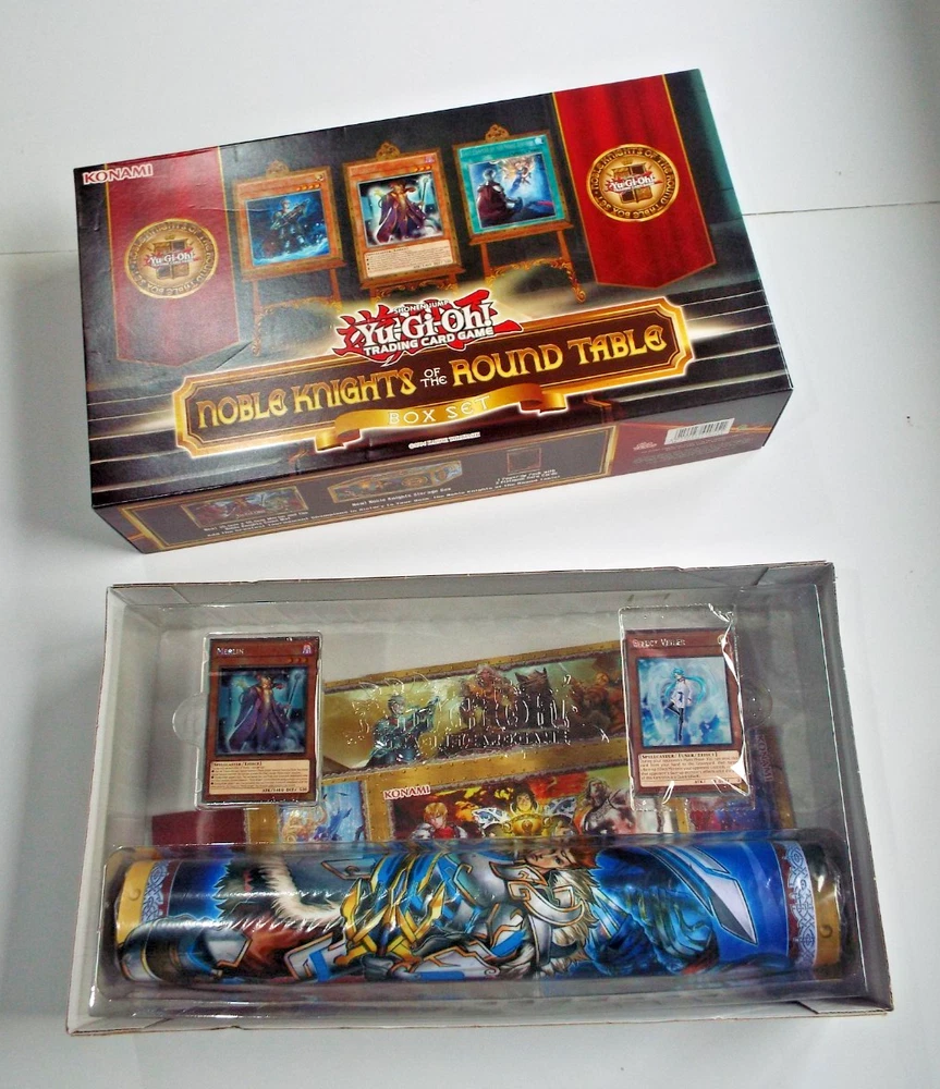 Yugioh Noble Knights of the Round Table boxset released in 2014, the cellophane has been removed from the outer box, everything inside the box is in mint condition - still sealed, never been played with. All my Yugioh cards have been in storage for many years.