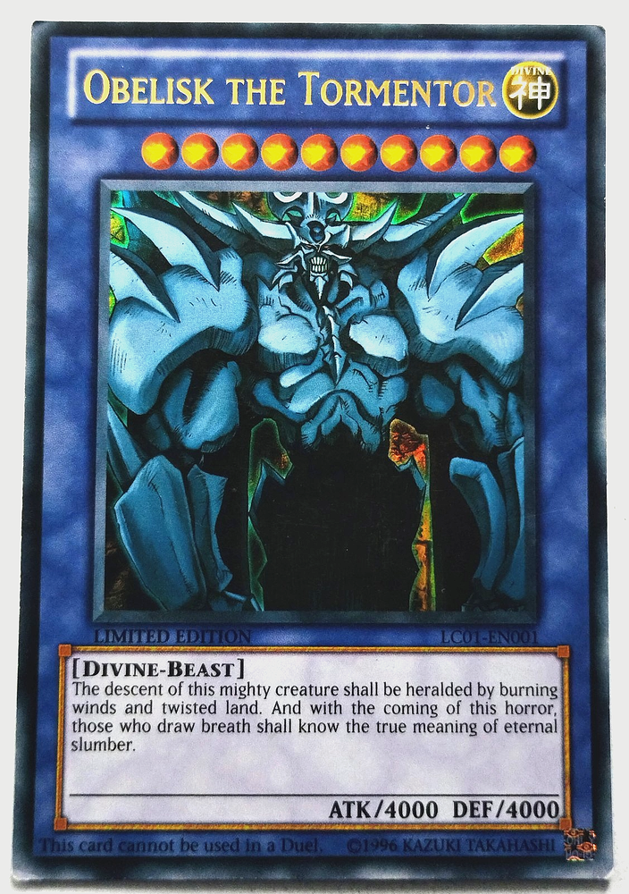Yugioh Obelisk the Tormentor LC01-EN001 Ultra Rare Limited Near Mint This card is in Near Mint condition. Ultra Rare card from the Legendary Collection 1 set.
