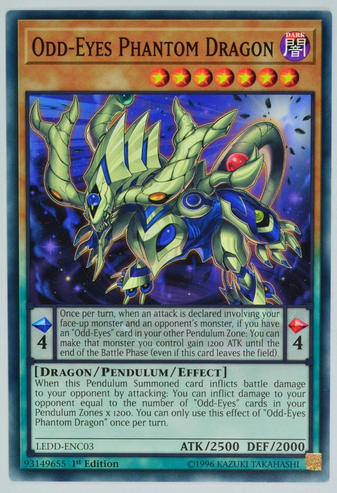 YuGiOh Odd-Eyes Phantom Dragon LEDD-ENC03 Common 1st Edition Cards are mint
