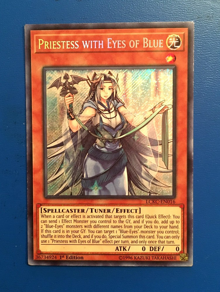 Yugioh Priestess with Eyes of Blue 1st Edition from the Legendary Collection Kaiba set for sale. LCKC-EN-016. Contact Information: I can be contacted at any time through eBay messages if you have any questions, comments, or product requests. Payment: I also accept Paypal and EMT (Canada Only) for payments. Please contact me for details.