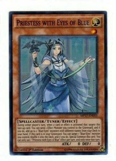 Yugioh Priestess with Eyes of Blue MP17-EN065 Super Rare 1st Edition near mint condition card Up g r a d e or Complete Your Collection! We make every attempt to ship out your stuff as soon as possible and get everything shipped out within 1 business days. Thanks for looking. We do combine on the shipping; just add to a cart and once done with all your purchases, checkout by clicking on the shopping cart icon at the top right of your screen. The shipping discounts and combined shipping are already set up for you.