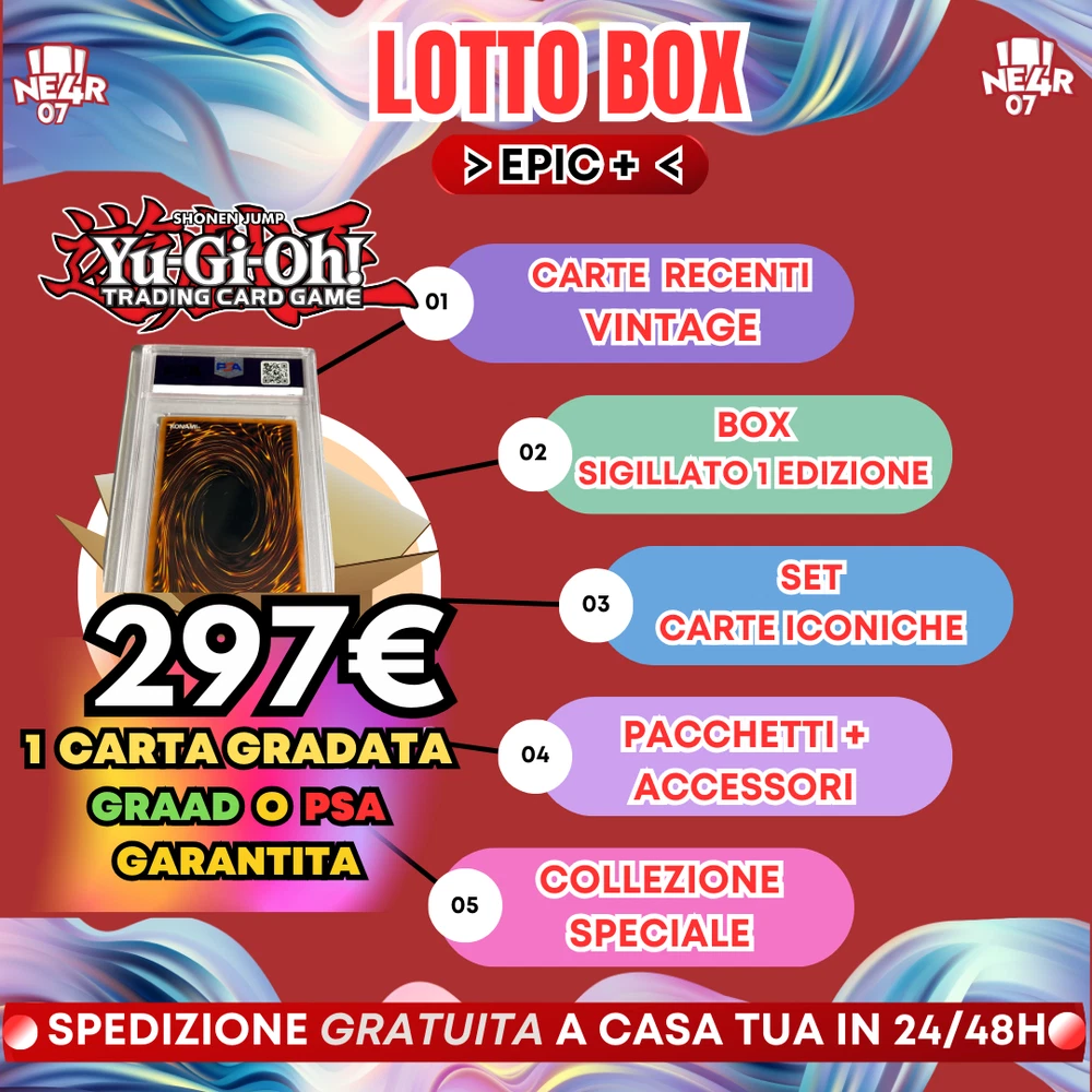 BENVENUTO Promo Box da te in 24/48h Composizione lotti carte Promo box: (questa non è una mystery box yugioh o mistery box Yu Gi Oh dato che il contenuto è ben descritto di seguito) - 17 Perfect+: Vedi foto (Condizioni ottime) Carte set recenti + vintage + bustina ITA + accessori + carte brillanti - 27 Super: Vedi foto (Condizioni Ottime) Carte set recenti + vintage + bustine ITA + carte rare brillanti - 37 Mega: Vedi foto (Condizioni ottime) Carte set recenti + vintage + carta sigillata + deck nuovo + bustine ITA + carte rare brillanti - 47 Mega+ : Vedi foto (Condizioni ottime) Carte set recenti + vintage + carta sigillata + deck nuovo + bustine ITA + drago bianco occhi blu Near mint + Mago nero near mint + carte rare brillanti - 67 Ultra : Vedi foto (Condizioni ottime) Carte set recenti + vintage + Drago bianco occhi bli + mago nero + le 3 divinità egizie ( tutte carte near mint / nuove) + bustine ITA + carte rare brillanti + 1 carta gradata graad / aigrading ( con voto 8 near mint / mint) a salire. - 87 Ultra+ : Vedi foto (Condizioni ottime) Carte set recenti + vintage + mega tin sigillata + bustine ITA + accessori + drago bianco occhi blu + mago nero + le 3 divinità + bustine ita + carte rare brillanti - 107 Hyper : Vedi foto (Condizioni ottime) Carte set recenti + vintage + bustine ITA 25th + 1 carta gradata Psa / Bgs con voto minimo 7 (near mint) + carte rare brillanti - 147 Epic: Vedi foto (Condizioni ottime) set sealed (carte sigillate e/o prodotti sigillati) + Promo pack creato da noi all interno puoi trovare bustine pacchetti carte accessori vari. + bustine semi vintage + 1 box sigillato (italiano o inglese) + mix di carte vintage - 297 Epic+: V edi foto (Condizioni ottime, puoi trovare qualche vintage di valore non in condizioni ottimali) carte recenti / vintage + accessori + un box sigillato ITA ENG in PRIMA EDIZIONE 1ed + Set completo di carte iconiche ( bestie sacre maga nera drago bianco mago nero ecc) + tante bustine + 1 collezione speciale da aprire + 1 carta gradata Psa / graad con voto minimo 7 (near mint) a salire - 397 Legend: V edi foto (Condizioni ottime, puoi trovare qualche vintage di valore non in condizioni ottimali) Tutte le carte saranno vintage (ldd sdf lob lon ldi pmt dr1 ldi db2 ecc) in prima edizione + Promo pack+ set collezioni speciali (prodotti edizione limitata) + 2 box (ita eng jap possibile uno sia semi vintage) + accessori + tanti pacchetti da sbustare + 1 carta gradata Psa / graad con voto minimo 8 (near mint) a salire - 797 Next Level: V edi foto (Condizioni ottime, puoi trovare qualche vintage di valore non in condizioni ottimali) + MIx podotti da aprire ( deck tin bustine collezioni speciali promo ecc) + 1 carta gradata con voto minimo 8 (near mint/ mint) a salire + 1 box + un mix di 24 pacchetti + carte iconiche presenti in foto + il promo album ( un book da scoprire con solo carte vintage dei primissimi set tra cui ldd sdf pmt dr1 ldi eroi elementali carte in 1 edizione ghost collectors ultimate ecc) il prodotto perfetto per un grande collezionista. Le sorprese e il divertimento sono assicurati !!! Nel prezzo è contenuta l iva al 22 % e la spedizione con corriere da 7€ COME UNIRE LE SPESE DI SPEDIZIONE: Per avere una costo unico di spedizione è necessario SEGUIRE questa semplice spiegazione: 1 Aggiungi al tuo carrello (senza cliccare il tasto 'Compra Subito') tutte le carte che desideri acquistare. 2 Apri la pagina del carrello ebay 3 Clicca il pulsante 'Richiedi Il Totale Al Venditore'. QUESTA PROCEDURA è POSSIBILE SOLO TRAMITE PC. NON FUNZIONA CON APP / TABLET / SMARTPHONE. 4 Quando il totale sarà stato correttamente unito, ti invieremo un messaggio/mail e tu potrai procedere al pagamento andando nel carrello. COSTI DI SPEDIZIONE: PREZZI E SERVIZI A FINE DESCRIZIONE PACCHETTI : Prepariamo i pacchi/buste nel miglior modo possibile, proteggendo al meglio i prodotti acquistati. Se per caso, l' oggetto dovesse arrivare diverso, danneggiato o con problemi, contattaci e ti forniremo tutta l' assistenza possibile. GARANZIA - INFO - CONTATTI GARANTIAMO CHE TUTTI I NOSTRI PRODOTTI SONO AL 100% ORIGINALI. Abbiamo molte carte/box/accessori in vendita, dai uno sguardo anche al nostro negozio ebay che magari potresti trovare qualcosa di interessante. Per qualsiasi dubbio o domanda scrivici senza problemi, ti risponderemo nel minor tempo possibile. GRAZIE DELLA VISITA. SPEDIZIONI: ITALIA Posta 1 conferma l' avvenuta consegna del pacchetto Costo 2,89 euro: Consegna 2/6 giorni, Valore massimo dell' ordine 50 euro, Peso Inferiore a 100gr Costo 6,50 euro: Consegna 2/6 giorni, Valore massimo dell' ordine 50 euro, Peso Superiore a 100gr Raccomandata Con codice di tracciatura e controllo completo del viaggio. Costo 5,89 euro: Consegna 3/7 giorni, Nessun v alore massimo per l'ordine , Peso Inferiore a 100gr Costo 7,50 euro: Consegna 3/6 giorni, Nessun v alore massimo per l'ordine , Peso Superiore a 100gr Corriere Con codice di tracciatura e controllo completo del viaggio. Costo 7,50 euro: standard Consegna in 3/5 giorni Costo 9,99 euro: express Consegna in 24/48h EUROPE ( I combine shipping ) Ordinary No traking 2,20 euro: Delivery 10/30 days, Package weight less than 20 grams, maximum purchase value 15 euro Prioritary No traking 4,50 euro: Delivery 5/12 days, Package weight less than 50 grams, maximum purchase value 45 euro 5,50 euro: Delivery 5/12 days, Package weight less than 100 grams, maximum purchase value 45 euro 8,30 euro: Delivery 5/12 days, Package weight less than 250 grams, maximum purchase value 45 euro Registred Shipment traking 9 euro: Delivery 7/18 days, Package weight less than 20 grams 10,50 euro: Delivery 7/18 days, Package weight less than 50 grams 11,50 euro: Delivery 7/18 days, Package weight less than 100 grams 13,70 euro: Delivery 7/18 days, Package weight less than 250 grams Courier service Shipment traking 12,50 euro: Delivery 5/10 days AMERICA E ASIA ( I combine shipping ) Prioritary No traking 5,50 euro: Delivery 20/50 days