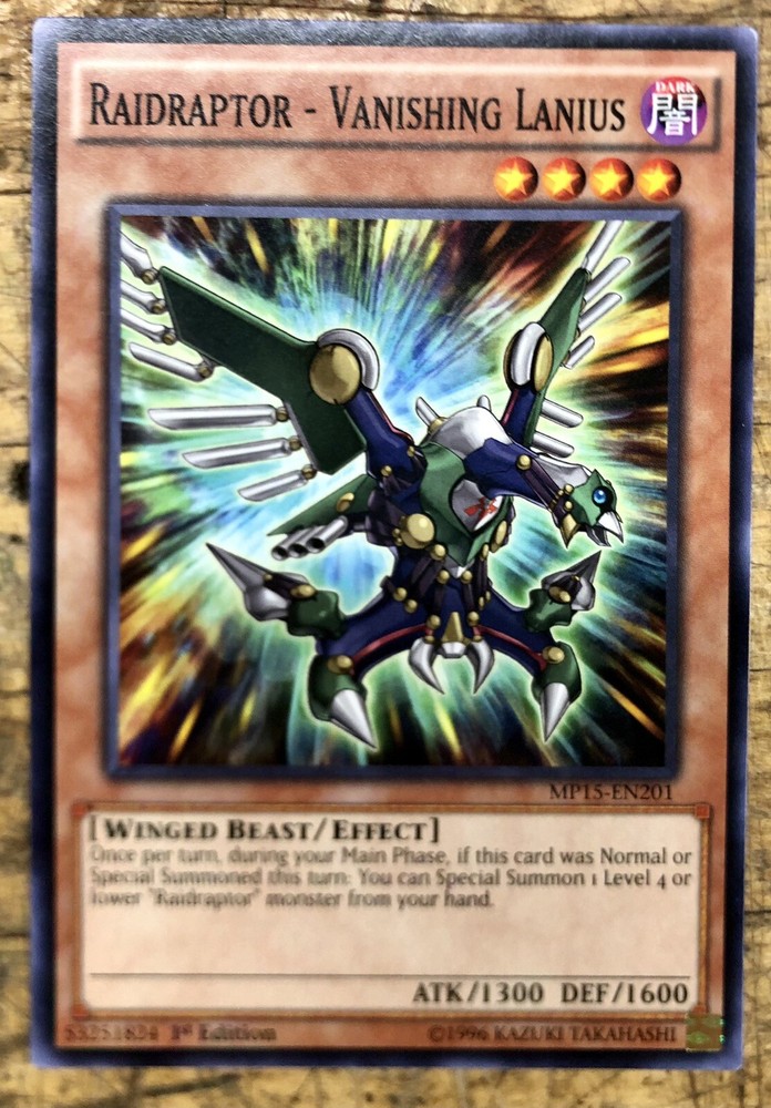This Yu-Gi-Oh! TCG card is a must-have for any collector or player. It features the iconic Raidraptor monster, with the Vanishing Lanius attack. This card is a Common rarity, and comes in English language from the manufacturer Konami. With its 1st Edition feature, this card is a valuable addition to any collection. Its card number is MP15-EN201, and it is categorized under Toys & Hobbies and Collectible Card Games. Don't miss out on the chance to own this rare and sought-after card.