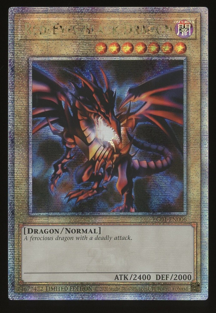 Yugioh Red-Eyes Black Dragon LC01-EN006 Quarter Century Secret Rare Limited NM. 2 ARE AVAILABLE, PRICE IS FOR ONE CONDITION: For raw cards, the condition is EX-NM+ depending on the year and manufacturer of the item. Almost all of the raw cards listed have been in sleeves and/or top loaders and boxes for a year up to a decade. Some cards may have surface dimples, imprints, or minor printing scratches. The cards may have whiting on edges, stains, whiting on corners, dull corners or edges, etc. please see scans to help judge the condition of the card listed. YU-GI-OH! BGS GRADED CARDS: These cards may have light to moderate fading or very light marks on the slab themselves. I am not an expert in Yu-Gi-Oh cards so I cannot give my opinion on the cards condition (or amount of fading) inside of the slab. Please see the scan and judge the condition of the slab and card for your own judgement. For Thick Stock Cards/Relics: almost if not all thick stock cards are damaged on edges or corners during manufacturing/packaging. Any thick stock cards listed on this account are expected to have possibly damaged edges or other minor defects. For Slabs: slab companies are known for their low quality control and customer service. BGS slabs are known for easily chipping, scratching, and other minor defects. PSA slabs may also have minor scratches, marks, or minor defects as well. Please analyze the scan of the slab before purchasing. That being said, PSA slabs may hold similar defects as well. If you have any questions about the item(s) listed, please let me know. SHIPPING: Shipping is free! Any card sale $20 or less will be shipped through eBay’s $20 or less envelopes in a sleeve and/or top loader. Any slabs or raw cards sold over $20 will be shipped in bubble mailers through USPS with tracking. All cards will be shipped within one business day of payment being received. RETURNS: Returns are not accepted for this item. Thank You!