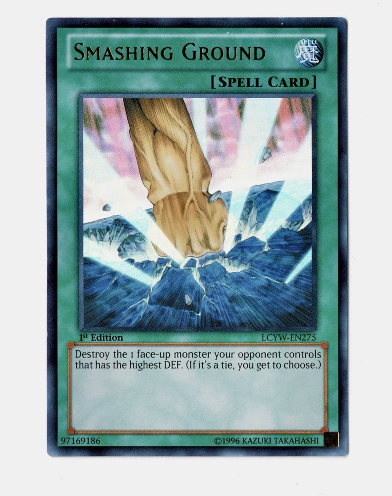 Smashing Ground 1st Edition from Legendary Collection 3 set. YuGiOh! TCG. Card condition is VLP/NM (Mostly NM). You may not receive the card shown in photo. All copies are in the same condition. All card orders packaged with care using a penny sleeve, top loader and a team bag. Orders up to $20 will be shipped in a PWE, $20+ will be shipped in a Bubble Mailer, anything fragile/sealed (depending on the product) will be shipped in a box. All orders are shipped out within 24 hours. HAPPY HUNTING!
