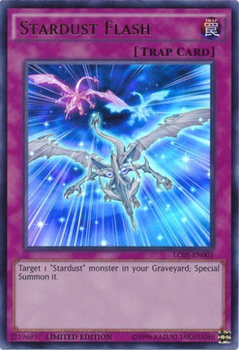 You are purchasing: Yugioh! Stardust Flash - LC05-EN003 - Ultra Rare - Limited Edition Condition: Near Mint | Language: English All photos are stock, unless mentioned otherwise. Card edition, rarity, etc. is listed in the title and description. Items will be shipped within 1 business day upon receiving cleared payment. We ship Monday through Friday in order to get the item(s) to you as quickly as possible Before leaving neutral or negative feedback, please contact us beforehand so we can discuss the issue. Feel free to message me with any questions you have regarding this auction or my policies. Shipping Options: Non-Expedited Shipping - $0.99 Orders $24.99 (exc. sales tax) and under will be sent in a white envelope in a card saver + soft sleeve using eBay's Standard Envelope tracking service. Orders $30.00 (exc. sales tax) and over will be sent with free USPS tracking information w/ toploader + soft sleeve. Priority Mail - $9.99 2-3 Day shipping Orders will be shipped in a flat rate envelope in a toploader + soft sleeve. Priority Express Mail - $29.99 1-2 Day shipping Orders will be shipped in a flate rate envelope in a toploader + soft sleeve. *All orders over $100 will be sent with free insurance. All orders over $250 will be sent with free insurance and signature confirmation.* Card Grading: Near Mint (NM) - Cards with this grade will show minimal to no wear from shuffling, play or handling and can have a nearly unmarked surface, crisp corners and unblemished edges outside of a few minimal flaws. Holographic cards are more scrutinized than non-holo cards. Lightly Played (LP) - Cards with this grade may have a few dings, light playwear and/or edgewear. A few surface scratches are acceptable. A crease or bend is acceptable if it is less than approximately 1/2 inch in size and is only visible on one side. Moderately Played (MP) - Cards with this grade may have dings, playwear and/or edgwear, 1 or 2 creases or bends that do not go through the length of the card. Cards may have a 1 or 2 deep scratches. Heavily Played (HP) - Cards with this grade may have dings, playwear and/or edgwear, creases or bends that may go the length of the card, markings and/or coloring, tears on the edges. Despite being the lowest of grading, these cards are still tournament legal. If you receive a card not in the stated condition, please contact us to return the item for a full refund. Please note that card centering is not guaranteed nor is it a factor when we grade a card for condition. Thank you for buying.