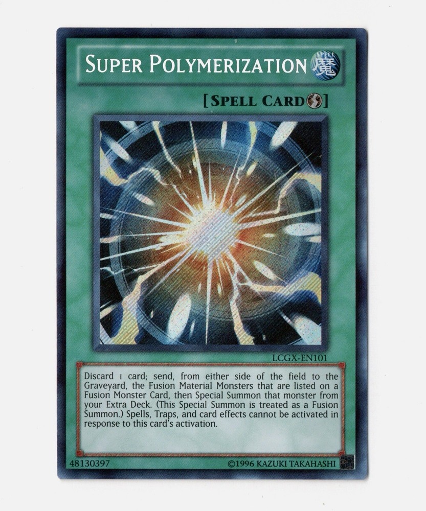 Super Polymerization from Legendary Collection 2 set. YuGiOh! TCG. Card condition is as shown. Please let me know if you'd like to see more photos of the card, I'd be happy to send them! All card orders packaged with care using a penny sleeve, top loader and a team bag. Orders up to $20 will be shipped in a PWE, $20+ will be shipped in a Bubble Mailer, anything fragile/sealed (depending on the product) will be shipped in a box. All orders are shipped out within 24 hours.