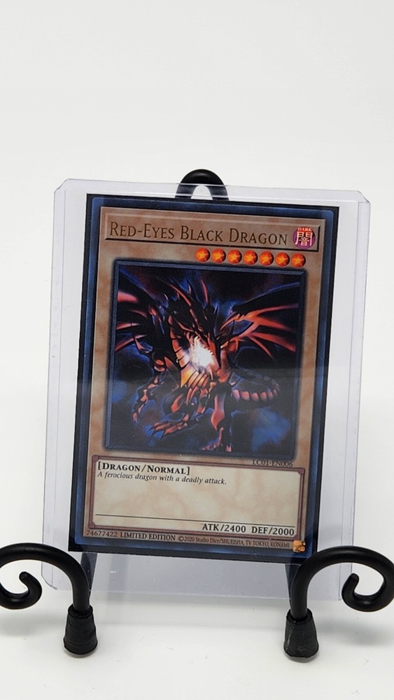 Get ready to reign supreme in your next Yu-Gi-Oh! TCG battle with this ultra-rare, Red Eyes Black Dragon from the Legendary Collection: 25th Anniversary Edition. With a powerful attack of 2400 and a defense of 2000, this ancient, dark, and evil dragon is a force to be reckoned with. Made with high-quality card stock and a stunning holo finish, this standard-sized card (LC01-EN006) is a must-have for any serious collector or player. Whether you're a seasoned veteran or just starting out, this English-language card manufactured by Konami is perfect for unleashing your inner dragon.