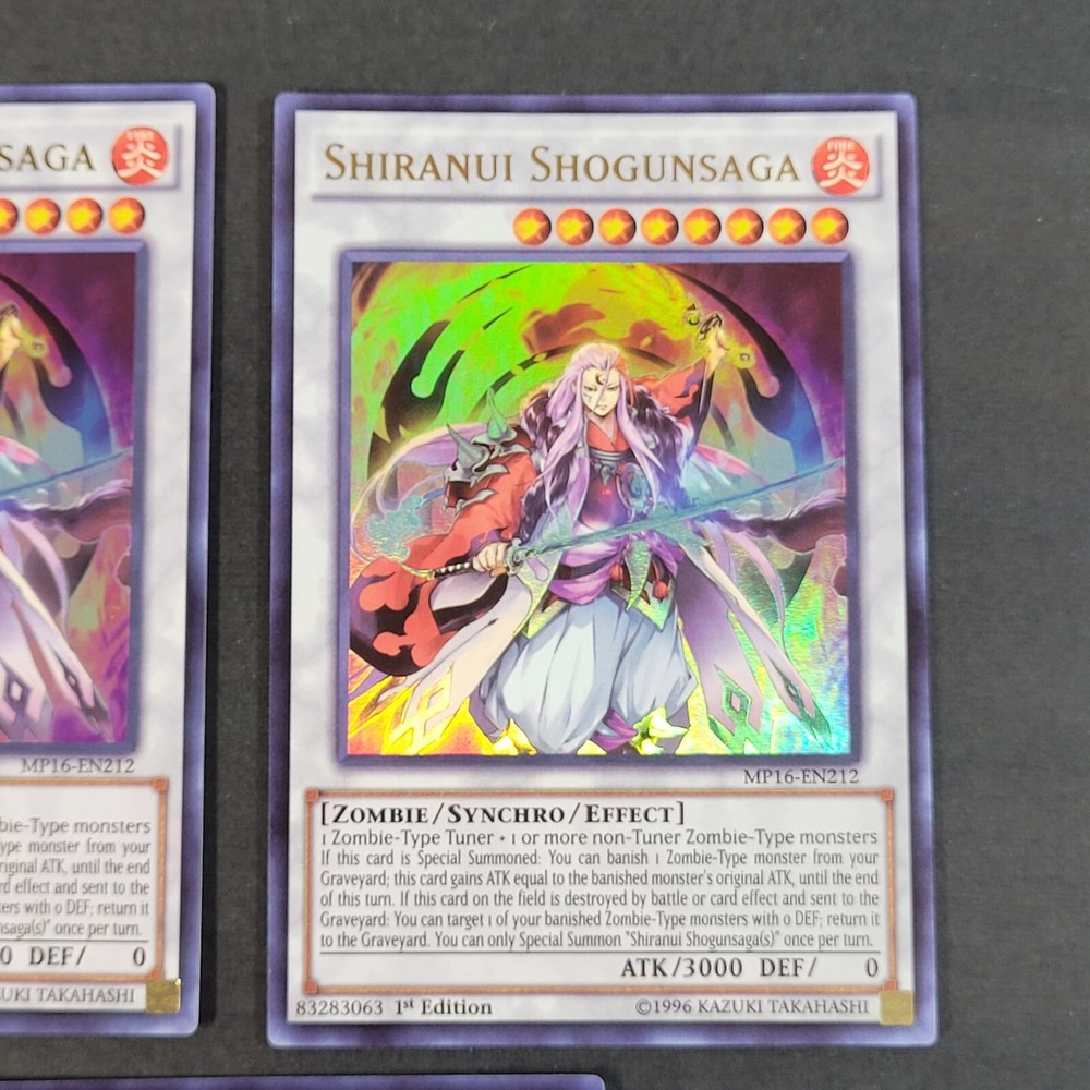 This ultra rare Shiranui Shogunsaga is a must-have for any serious Yu-Gi-Oh! collector or duelist. The 2016 Mega Tins 1st edition print looks stunning with its crisp artwork and flawless near-mint condition. As a powerful Fire Zombie Synchro monster, it's both playable and highly sought after. The card arrived exactly as described, with perfect edges and no wear. Konami's quality shines through in this gorgeous ultra rare – definitely worth adding to your deck or display!