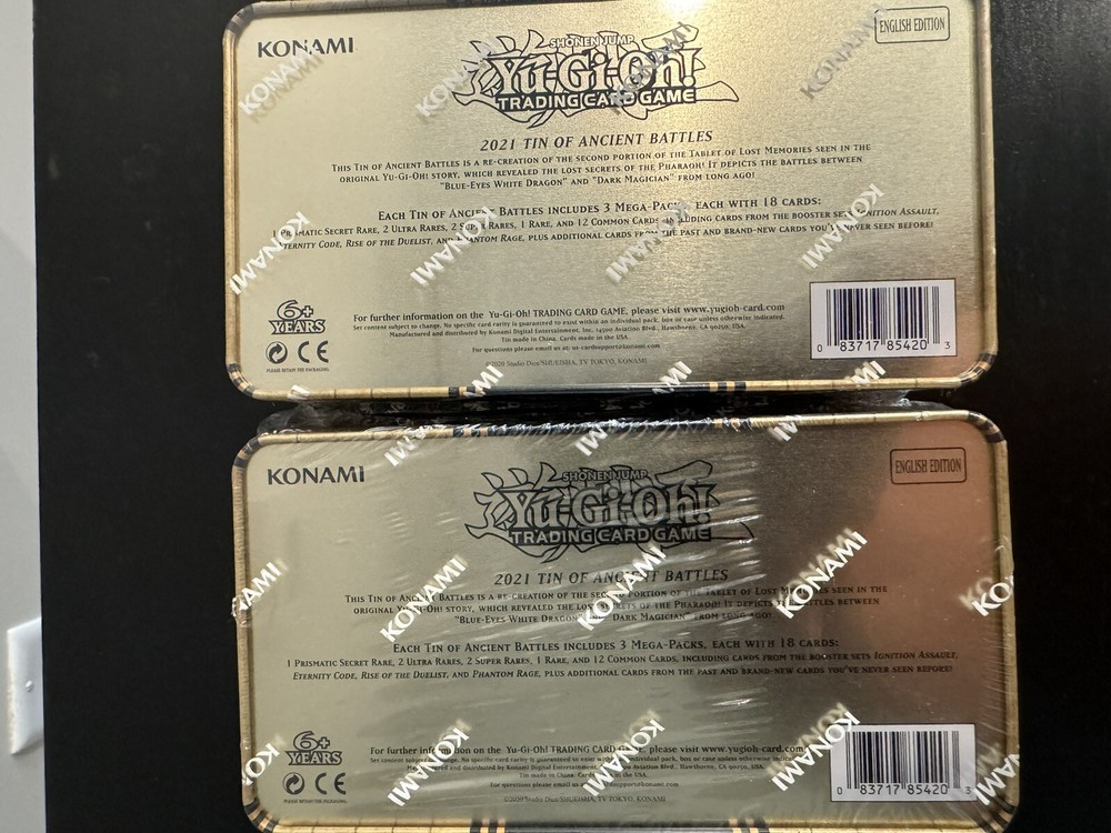 This lot includes two or three mega packs of the Yu-Gi-Oh! TCG Ancient Battles Tin set, depending on your preference. Each pack contains six sets of cards, including rare and powerful cards, artifacts, and accessories. The cards are in konami configuration and are suitable for players aged six and above. The Ancient Battles Tin set is an exciting addition to any collector's or player's collection. With a variety of cards and themes, this lot offers a great chance to expand your Yu-Gi-Oh! TCG collection. Don't miss out on this opportunity to add some fun and powerful cards to your arsenal!