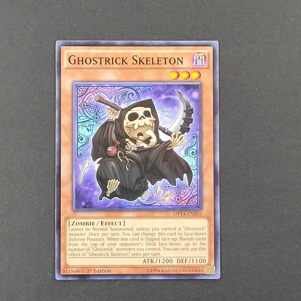 Yugioh TCG - Ghostrick Skeleton is a Common Zombie card from the 2015 Mega Tin set. This English language card features the spooky Ghostrick character and has a 1st Edition stamp, making it a sought-after collectible. Manufactured by Konami, this card is graded 9 and is perfect for fans of the Yu-Gi-Oh! Trading Card Game looking to enhance their deck with a powerful Effect Monster. This Standard-sized card is ideal for players aged 8 and above, adding a dark element to their gameplay. With its unique design and rarity, the Ghostrick Skeleton card is a must-have for any collector or enthusiast of CCGs. Thank you for Visiting my store you can browse the rest of my items for sale here : https://www.ebay.ca/str/dragontreegames I offer combined shipping on all my Trading cards for international Customers to help offset shipping cost