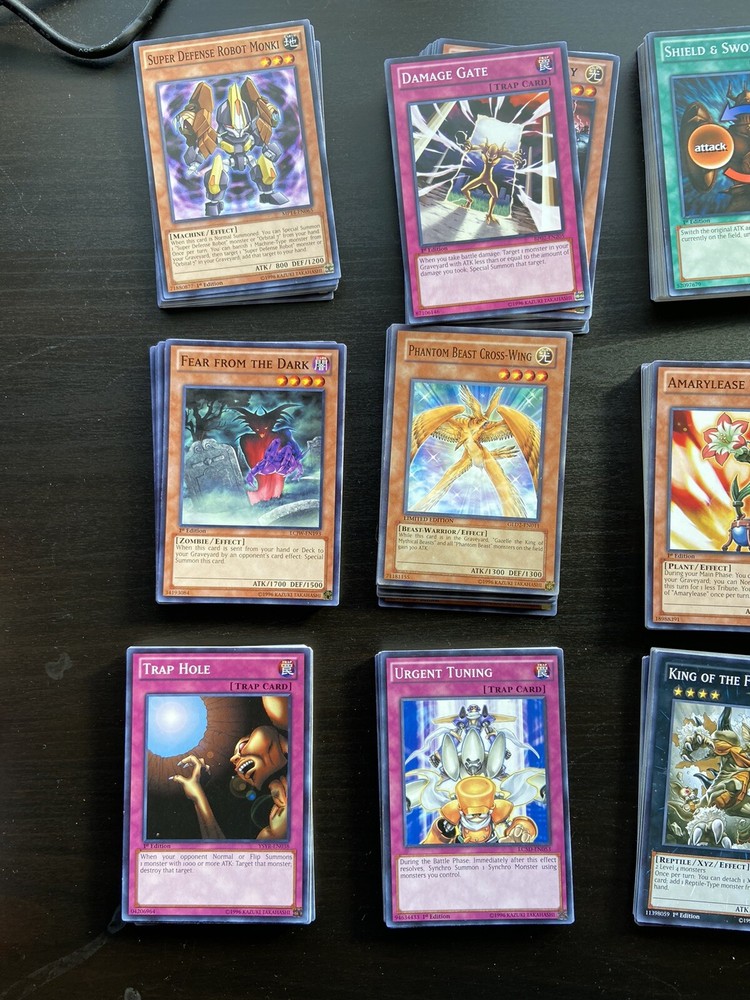 Yugioh TCG: Shonen Jump tin w/ 265 Non-Holo 1st Edition Cards (BP02, LCJW, YSYR, MP14, & LCSD) The 265 cards are all Near Mint and come from newer sets (around 2013/2014), including: BP02-EN, Battle Pack 2: War of the Giants (126 cards); MP14-EN, Mega-Tin Mega Pack (69 cards); YSYR, Starter Deck: Yugi Reloaded (41 cards); LCJW, Legendary Collection 4: Joey's World (19 cards); and Legendary Collection 5D's Mega Pack, (10 cards). Shipping: The cards will be placed with wrapping inside the tin, and the tin will be placed in a bubble mailer. If you require any further detail / pictures on the cards, please contact me.