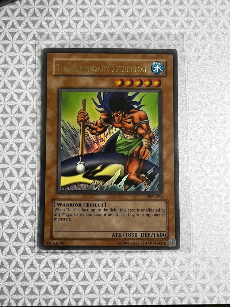 Yugioh - The Legendary Fisherman PSV-076 Unlimited Ultra Rare. Condition and flaws are as pictured. Whitening, scratches, and dings on front and back. Sleeved and toploaded.