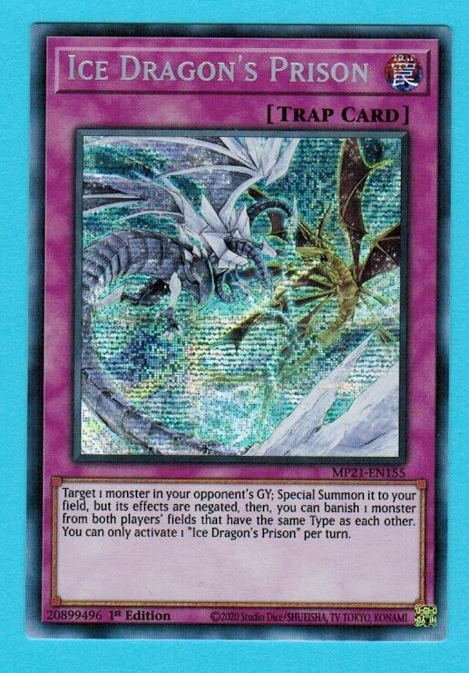 You are puchasing on a Yu Gi Oh! TCG Card Pictures are of actual card . Yugioh Yu-Gi-Oh 2021 MEGA-TINS: Ancient Battles ICE DRAGON'S PRISON [TRAP Card] PRISMATIC SECRET RARE Holographic card MP21-en155 1st Edition Any questions on any of the cards please message us.