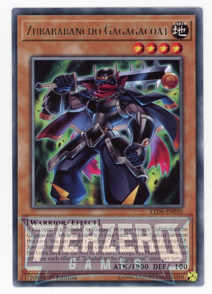 Yugioh Zubababancho Gagagacoat LED6-EN035 Rare 1st Edition NM/LP Near Mint Condition - Straight from pack to sleeve. Due to manufacturing there can be inconsistencies in card condition. TierZero Games will always do our utmost to offer the most competitive prices on the market both on eBay and on our website. Card picture is an example of product - not the exact card you will receive. Please feel free to contact us with any questions or queries and thanks for shopping at TierZero Games.