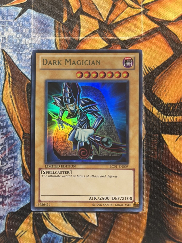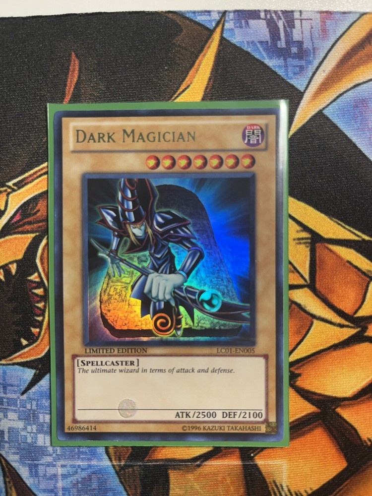 This limited edition Dark Magician card from the Yu-Gi-Oh! Legendary Collection is a must-have for any collector. The card is in near mint or better condition and features Ultra Rare Rarity, which makes it a valuable addition to your collection. The card is a Monster Card with the Attribute/MTG:Color of Darkness and was manufactured by Konami. The card is English language and not graded. It is a 1st Edition and not modified or vintage. The card's name is Dark Magician and it belongs to the Yu-Gi-Oh! game and CCG Individual Cards category. Other features of the card are that it is part of the limited edition and the set is Yu-Gi-Oh! Legendary Collection.