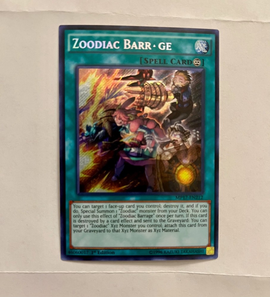 Zoodiac Barrage MP17-EN212 1st Edition MISPRINT - Secret Rare, MISPRINT text (see image), near mint, never played and right out of the box...