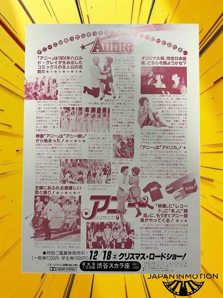 Date 1982 Size 20 x 31 cm Japanese text Promotional mini poster/flyer for the movie No rips, pin holes or folds. What is a Chirashi? A chirashi is a double-sided promotional flyer where the front is usually a mini version of the theatrical release poster and the reverse gives story and information, in Japanese. They are used to promote upcoming movies. I like chirashi because they are much easier to display than the huge theater poster. THE simple solution for eBay sellers. Track Page Views With Auctiva's Counter