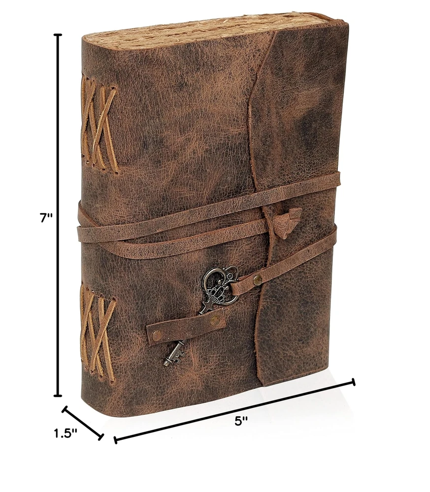 cuero Vintage Leather Journal - Antique Handmade Leather Bound journal with deckle edge paper for Men And Women Diary - Leather Sketchbook - Drawing Journal Notebook - Great Gift (5 by 7 inch) Description Features: PERFECT HANDCRAFT JOURNAL - Made from 100% Buffalo Leather with Antique Deckle Edge Paper. This Book Is Hand Crafted by Artisans Working with Leather for Decades. The Color of The Journal Is Very Unique Vintage Brown. USE ANY KIND OF PEN - Write/sketch/doodle on your journal notebook with a Fountain Pen CalligraphyPen, Ball Pen, Brush Pen, Acrylic Colours, Watercolor. IDEAL USE AND PERFECT GIFT Perfect Use for Business Executive, Poetry Work, Journalists, Craftsman, Writer. A Lovely Treat for Your Loved Ones for An Anniversary, Birthday or Graduation Present, Or for Someone Starting A New Adventure and A Perfect Gift for Those Who Love Vintage One. DIMESNIONS (7 X 5 X 1.5) With Uncut Deckle Edge Paper, Easily Handle Notebook, You Can Fit with Minimum Space, Easily Handle in Long Journey. Once You Have Used It You Will Feel Like You Have the Best Journal in the World. BINDING AND KEY BOOKMARK Binding Is Made by Hand Stitching Which Having Enough Strength That the Paper Never Comes Out. The Key Is Very Antique Can Be Used as Bookmark. The Leather Strap Wrap Around the Journal Is Complete Solution for Paper Safety and Open-Close the Journal. The Journal Made by High Quality Buffalo Leather and Paper Have Been Used Is Vintage Historical Paper Which Is Very Durable. OUR GUARANTEE - If for any reason you dont love the Wanderings vintage notebooks please let us know and well send you a refund - no questions asked. It is as simple as that! Product Details: Brand: cuero Color: Brown Theme: Book Sheet Size: 5 x 7 inches Pages: 200 Pages Cover Material: Leather, Cotton Style: Organizer without Compass Ruling Type: Plain Special Feature: Lock Product Dimensions: 7"L x 5"W x 1.5"Th Manufacturer: C CUERO Brand: cuero Item Weight: 12.3 ounces Product Dimensions: 7 x 5 x 2 inches Color: Brown Cover Material: Leather, Cotton Number of Items: 1 Size: 5 by 7 inch Ruling: Plain Sheet Size: 5 x 7 inches Manufacturer Part Number: 4Q-PWJB-5UOS Date First Available: April 24, 2021 Handling We will ship all orders within 3 business day of payment. Delivery We Do Not Ship Outside of the Continental US. Return Policy All items qualify for returns within 30 days of receipt. Buyer is responsible for return shipping on any item that is not damaged. Feedback We take our reputation seriously, we buy and sell online, so we understand the value of trust. If you are unsatisfied with your order, please contact us and we will work with you to resolve it to your satisfaction.