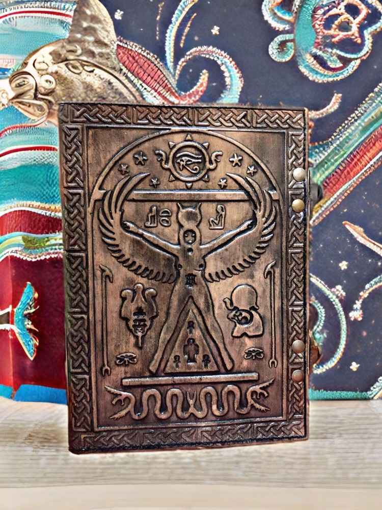 ✅UNIQUE HANDMADE VINTAGE PAPER - Vintage Journal is made with 200 pages of Antique Paper which looks like it was pulled from history. You will fall in love with the the antique handmade cotton paper which is unique to our Vintage Journal Notebook. ✅EXQUISITE & UNIQUE WITCH SEVEN STONE: The vintage journal is Antique color embossed which helps to reveal inner truth within yourself and encourage self-awareness and self expression. We have taken extra to make sure that the emboss is perfect in every piece. ✅VINTAGE LOCK AND STURDY BINDING - The vintage lock will keep all your valuable writing locked inside.Sturdy hand stitched binding to make sure that no paper comes out loose from your vintage notebook. \ ✅USE ANY KIND OF PEN - Sketch, Doodle, Write on your Leather Bound Journal with a Calligraphy Pen Fountain Pen, Brush Pen, Ball Pen, Acrylic Colours, Watercolor and many more. ✅MANY USES - Can be used as a notepad, journal, writing notebook, sketch book. 1.25 inch thickness, easy for handwriting, drawing or sketching and compact for carrying in your bag. Ideal for alternative Artist Sketchbooks, Photo Album, Traveling Notes, Business Executive, Logbook, Poetry Work, Journalists, Food Planner, Instagram Scrapbook and Bible Journaling. \ ✅A journal is more than just a blank canvas; it's a trusted confidant where memories are stored. Whether it's for your spouse, or a passionate writer in your family, this diary makes a thoughtful and timeless gift. Makes a great gift for father's day, Mother's Day, Valentines, Graduation or any event that calls for a gift. Perfect for those seeking inspiration, or simply cherishing the power of written word, it's a gift that transcends time.