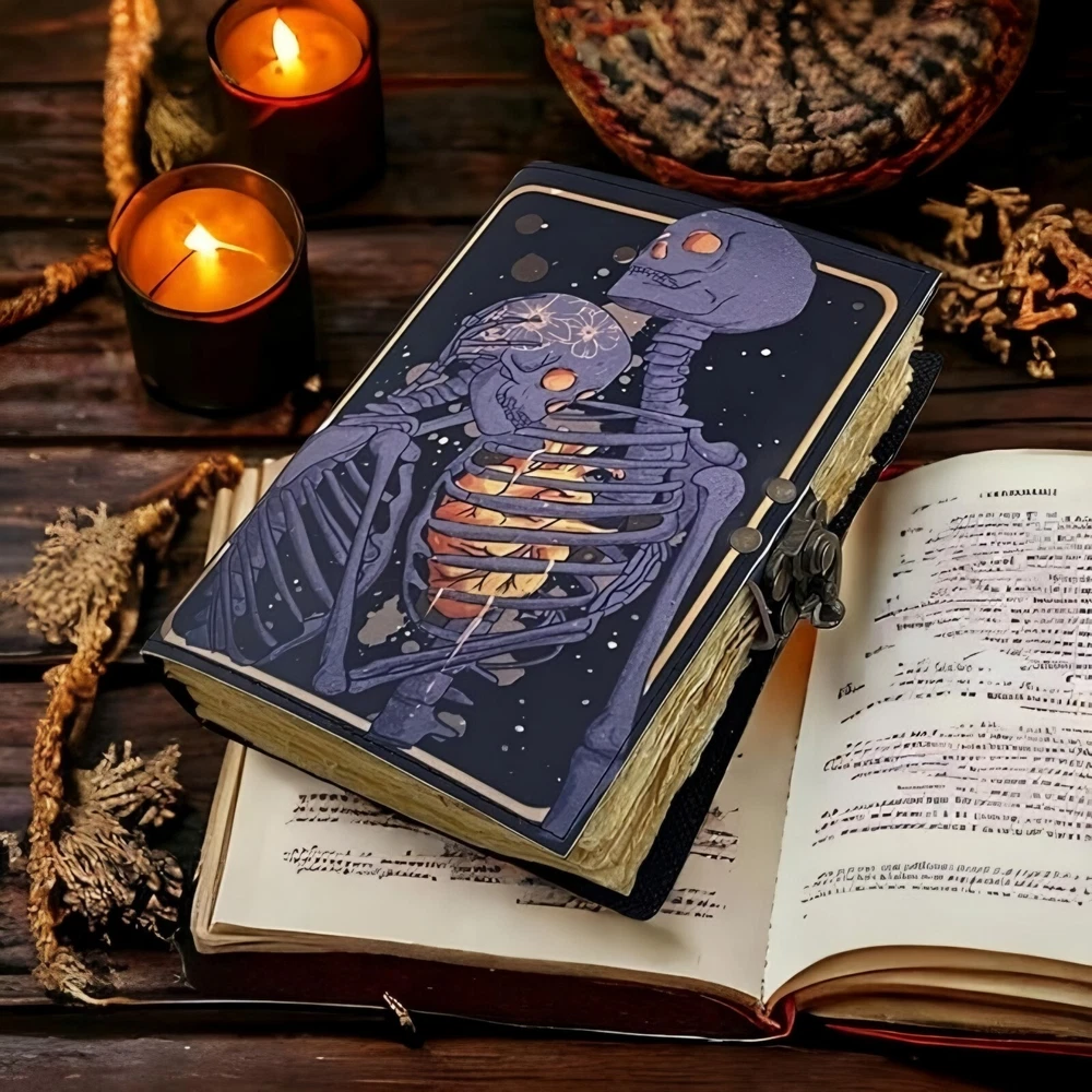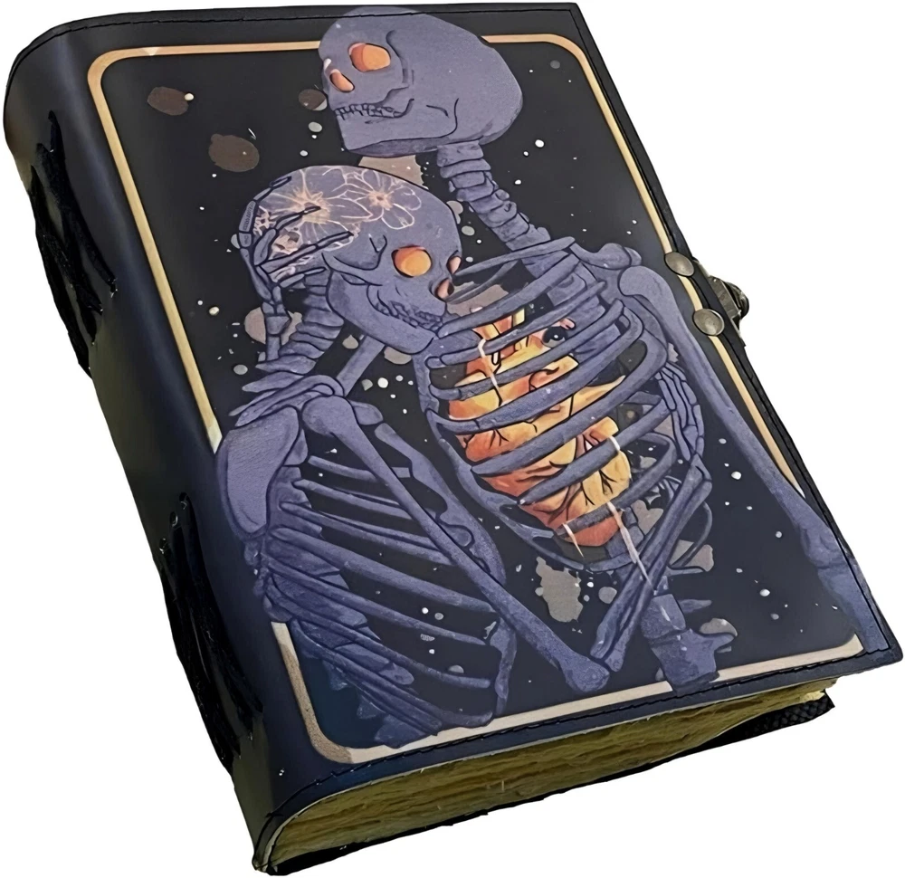 ✅BEAUTIFULLY CRAFTED: Our handmade artisan leatherbound spellbook grimoire journals are crafted from genuine leather. The black colouring gives it a beautiful antique vintage feel. Being hand-made from natural leather. The cover features a beautiful gold designing.. ✅VINTAGE LOCK AND STURDY BINDING - The vintage clasp lock will keep all your valuable writing locked inside.Sturdy hand stitched binding to make sure that no paper comes out loose from your Spell BOOK. ✅PERFECT FOR GIVING: Suitable for both men or women to write in, this locking diary daily travelers notebook is perfect for an avid writer, or Harry Potter fan looking for a magic spell book. Ideal to give as a birthday gift, valentines, halloween, graduation or wedding anniversary present. ✅Spell Book Tarot Journal Merchandise Popsocket Grimoire Wiccan Witch Prop Spells Decor Skull Lovers Blank Notebook Gift Props Spellbook Blanks With Clasp Coloring Books For Men Women Adult and you can keep this journal at your bedside as like memory of your loved ones.. ✅USE ANY KIND OF PEN - Size: 5"X7" This Gothic gifts Sketch, Doodle, Write on your Book with a Calligraphy Pen Fountain Pen, Brush Pen, Ball Pen, Acrylic Colours, Watercolor and many more. We guarantee no bleed through. SIZE - 5X7 Inch. ✅OUR PROMISE: We are positive you will love our products, but if you don't for any quality reason, we will replace or refund for up to 30 days after purchase. Our friendly customer service team are always available to answer any questions you might have. ✅MANY USES - This aesthetic Lovers Journal Can be used as a Hocus Pocus gifts , the lovers tarot journal, gothic notebook, skull journal, spell books halloween decorations, book of spells halloween decor. grimoire spell book, drawing or sketching and compact for carrying in your bag. Ideal for alternative Artist Sketchbooks, Photo Album, Traveling Notes, Business Executive, Logbook, hocus pocus spell book , Journalists, Food Planner, old spell notebook, antique handmade skull journal