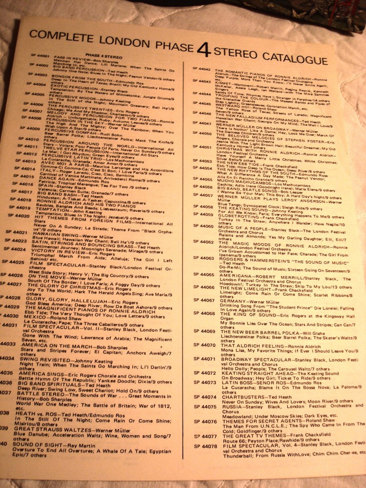 GRADING IN TITLE, IS FOR VINYL/COVER (SEE GRADING KEY BELOW) *NOTES VINYL: UK *NOTES SLEEVE: SHELF & EDGE WEAR, CUT OUT, GATEFOLD, LONDON PHASE 4 STEREO CATALOGUE WE COMBINE SHIPPING TO SAVE YOU MONEY ! FOR MULTIPLE PURCHASES, YOU MAY REQUEST A TOTAL AT CHECK OUT BEFORE PAYING. THE MORE YOU BUY, THE MORE YOU $ AVE! ALL RECORDS ARE SHIPPED IN A PROFESSIONAL BOX DESIGNED JUST FOR THAT PURPOSE. WE ALSO PUT A HEAVY PLASTIC SLEEVE ON ALL PICTURE SLEEVES FOR EXTRA PROTECTION. If you would like a track listing ,please e-mail and we will be happy to help you. This is a record, not a cd. Please Visit our store for thousands of more great items for your enjoyment , RECORDS CDS AND SUCH Our Record Ratings Factory Sealed -Means just that, still in original sealed wrap Near Mint -Very few, if any Imperfections Very Good+ -records in this grade will have light sleeve marks,a very few light scratches ,minimal surface noise Very Good -records in this grade were well loved and well played but not abused. Will have more obvious marks, scratches. possibly light surface noise on the quiet tracks. Very Good- -records in this grade will have many marks, scratches, Will likely have background noise. Good -these records will definitely show wear and tear. Plays well enough for "toe tapping or sing along" quality with out skips. background noise will be evident.I will not sell anything I would not play on my own record player. Refer to Photo(s) for jacket details The bitterness of poor quality is remembered long after the sweetness of low price has faded from memory. Powered by eBay Turbo Lister The free listing tool. List your items fast and easy and manage your active items.