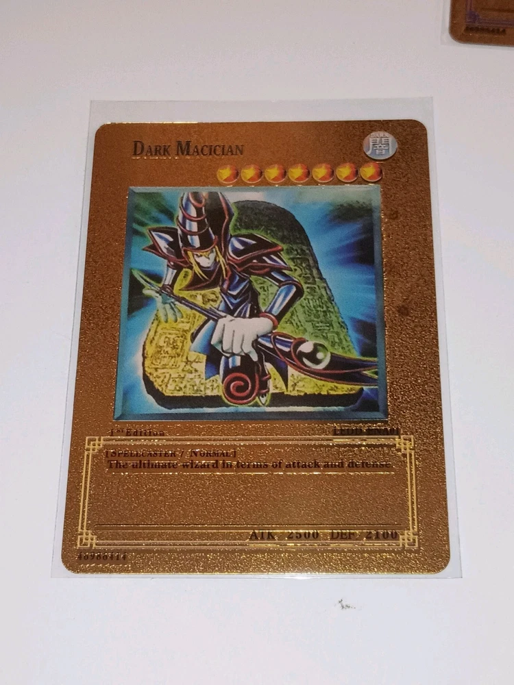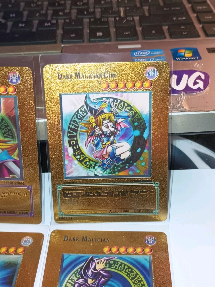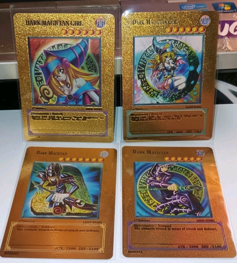 You will receive four gold foil Yu-Gi-Oh custom art cards that are in mint to near mint condition, and are definitely a sweet addition to anybody's Yu-Gi-Oh collection, and definitely really cool style. Also will be shipped very well protected.