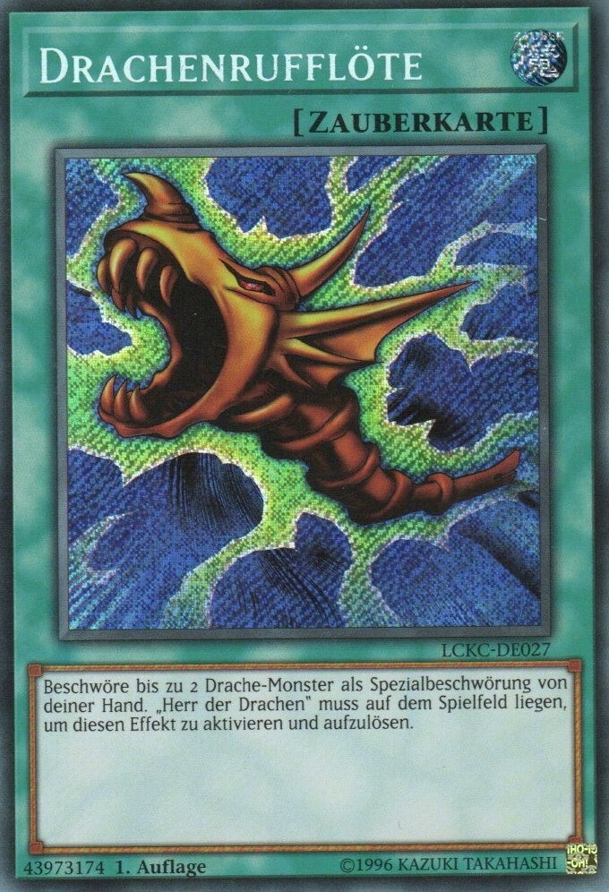 HALLO UND HERZLICH WILLKOMMEN ZU MEINEM ANGEBOT! HIER BERKOMMEN SIE DIE yugioh 1x Drachenrufflöte LCKC-DE027 SECRET RARE 1AUFLAGE DEUTSCH. Alle meine Angebote ( karten ) sind Original Konami und in einem guten Zustand. Versand Deutschland: Versand innerhalb von 2 Werktagen, Versand kostenlos per normalen Versand und 2,30€ per Prio Versand. Ausland: Versand innerhalb von 2 Werktagen, Versand 1,40€ ist 10€ Wert danach 5,00€ mit Versicherung. 3 2 1 DEINS