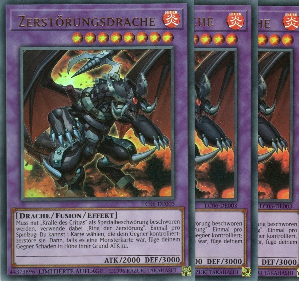 HALLO UND HERZLICH WILLKOMMEN ZU MEINEM ANGEBOT! HIER BERKOMMEN SIE DIE yugioh 3x Zerstörungsdrache LC06-DE003 ULTRA RARE L.AUFLAGE DEUTSCH. Alle meine Angebote ( karten ) sind Original Konami und in einem guten Zustand. Versand Deutschland: Versand innerhalb von 2 Werktagen, Versand kostenlos per normalen Versand und 2,30€ per Prio Versand. Ausland: Versand innerhalb von 2 Werktagen, Versand 1,40€ ist 10€ Wert danach 5,00€ mit Versicherung. 3 2 1 DEINS
