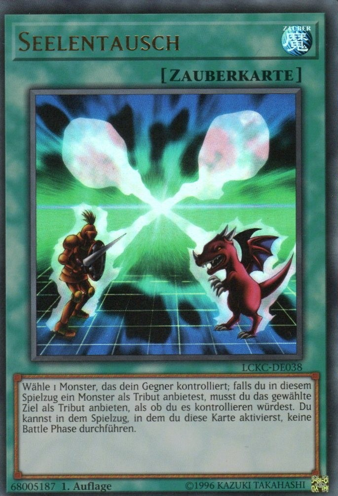 HALLO UND HERZLICH WILLKOMMEN ZU MEINEM ANGEBOT! HIER BERKOMMEN SIE DIE yugioh 1x Seelentausch LCKC-DE038 ULTRA RARE 1AUFLAGE DEUTSCH. Alle meine Angebote ( karten ) sind Original Konami und in einem guten Zustand. Versand Deutschland: Versand innerhalb von 2 Werktagen, Versand kostenlos per normalen Versand und 2,30€ per Prio Versand. Ausland: Versand innerhalb von 2 Werktagen, Versand 1,40€ ist 10€ Wert danach 5,00€ mit Versicherung. 3 2 1 DEINS
